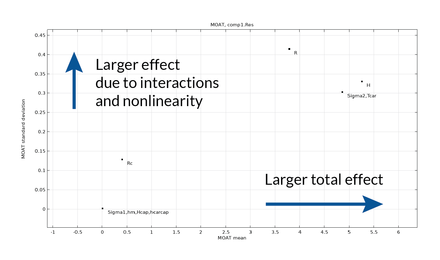 Figure 6. The MOAT mean is proportional to the total effect of a parameter on the QOI.