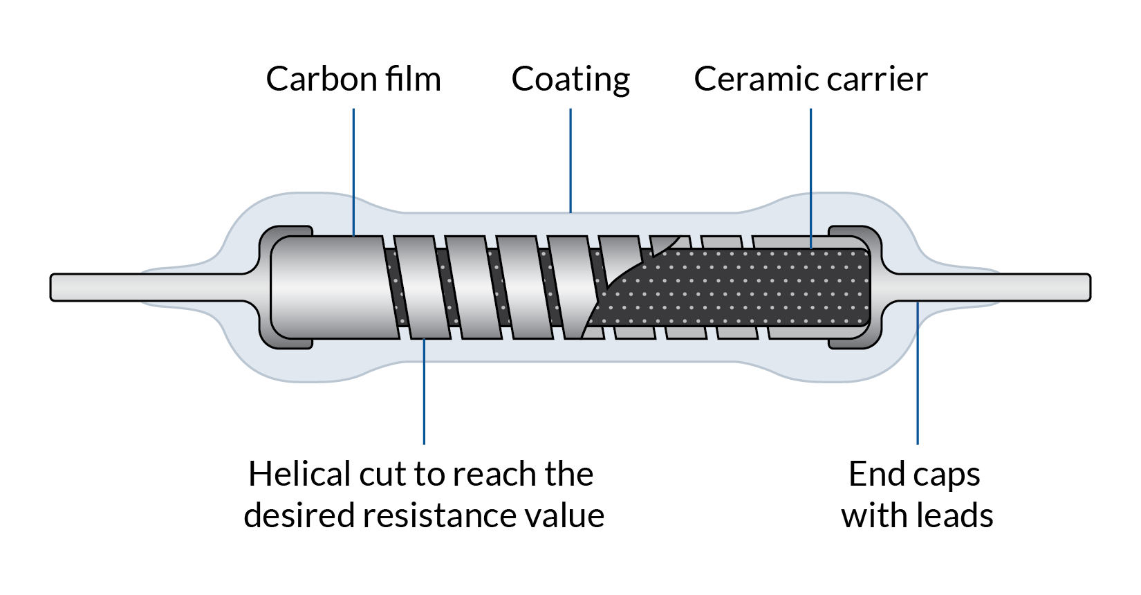 The structure of a metal-film resistor is more involved than it may first appear. Figure 2 shows that a typical resistor includes a ceramic core, a thin resistive film, and often a helical cut to fine-tune the resistance value. The resistance depends primarily on the resistivity of the film, the geometry of the conducting path, and how precisely it can be trimmed during manufacturing. Each of these parameters — film thickness, width of the spiral cut, or even slight misalignments — carries a degree of uncertainty. Figure 3 illustrates, in concept, how variations in input parameters can lead to a distribution in resistance values. (Note: This is a simplified example for explanatory purposes.)