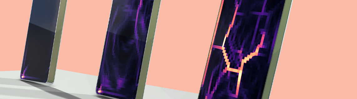 Simulation of a drop test of a cellphone with crack propagation visualized on the front of the phone.