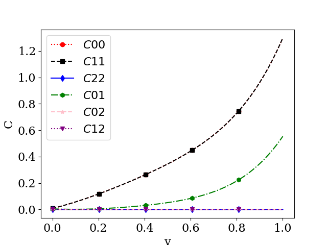 What I’ve done so far: I created a 2D square unit cell with a central void to represent varying volume fractions (v), controlled via void size. I applied 3 load cases (ε₁₁ = 1, ε₂₂ = 1, ε₁₂ = 0.5) and used average stress values to compute C₀₀, C₁₁, C₂₂, C₀₁, C₀₂, C₁₂. I performed a parametric sweep over volume fractions and saved average stress values for each load case in a CSV.