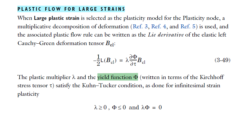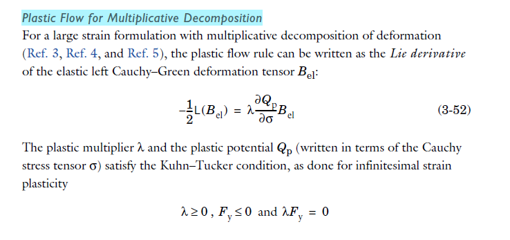 I am seeking clarification on the flow rule for finite plastic strain with multiplicative decomposition. In COMSOL 6.0 documentation, the flow rule is: